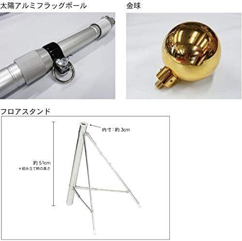旗立て台(フロアースタンド)・旗棒(アルミポール)・竿頭(国旗球)のシンプルな3点セットです。 既存の国旗などを掲揚する場合にご利用ください。 室内掲揚用です。