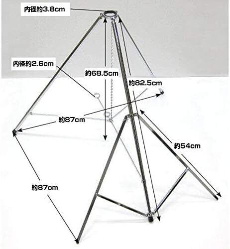 ◆鉄製クロームメッキ三脚:全長 収納時:82.5cm/組み立て時:約68.5cm ・脚太さ:約16mm ・差し込み口:3.8cm ・支え部分:約2.6cm・素材・鉄製クロムメッキ